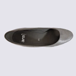 Escarpins Ara, Escarpins Confortables Femme En Cuir Gris Métallisé