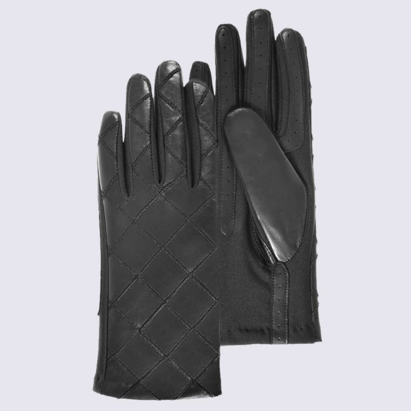 Gants Isotoner, Gants à Motif Losange élégants Femme En Cuir Noir