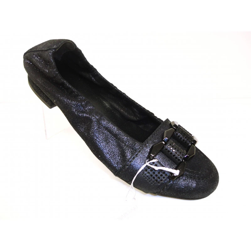 Ballerine K&S en cuir poudré navy  avec trois boucle fantaisie sur le dessus et élément zwarovski.  semelle gomme.