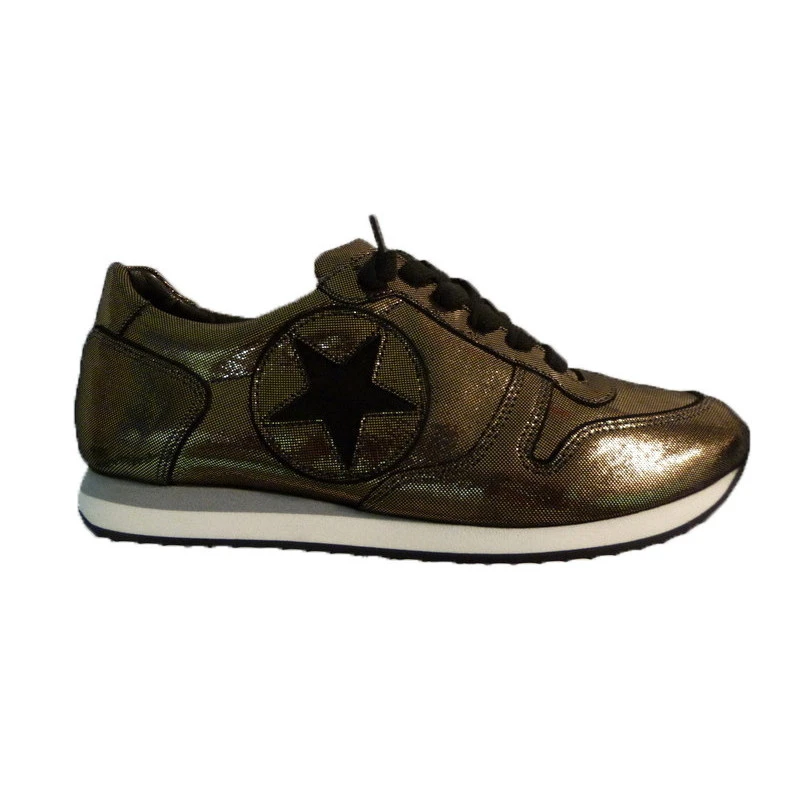 Magnifique basket K&S très tendance à lacet en dessus cuir lisse imprimé or entièrement doublé semelle gomme antidérapente.