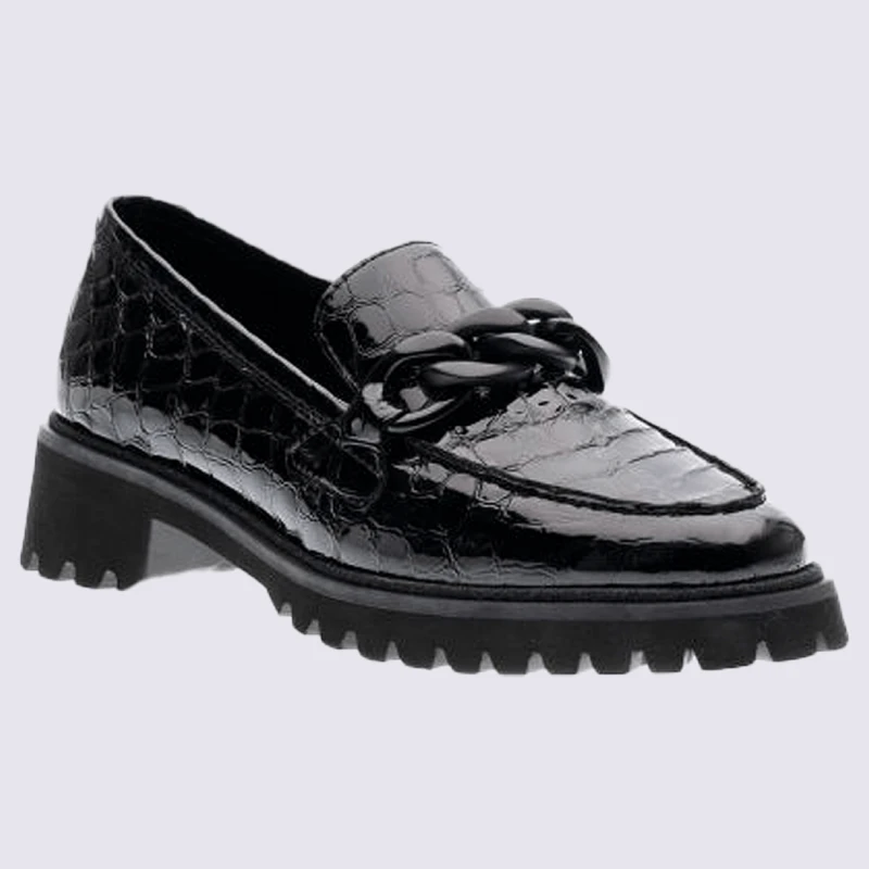 Mocassins Ara, Mocassins élégants Femme En Cuir Verni Croco Noir