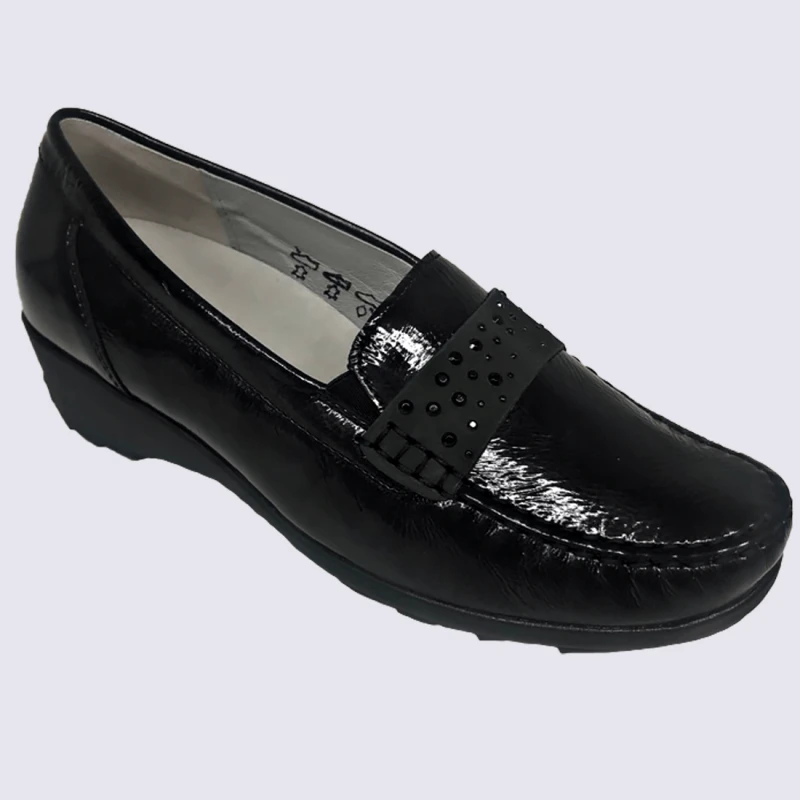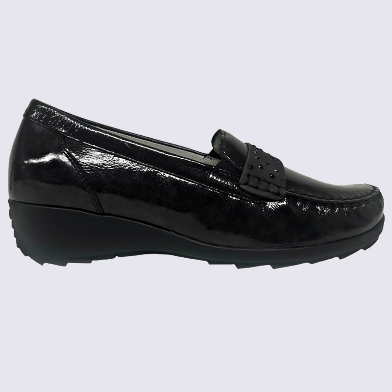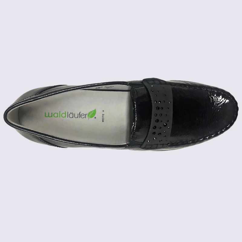 Mocassins Waldlaufer, Mocassins élégant Femme En Cuir Vernis Noir