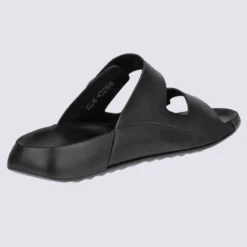 Mules Ecco, Sandales Deux Brides Femme En Cuir Noir
