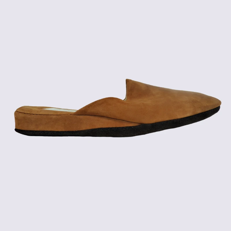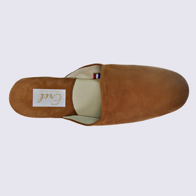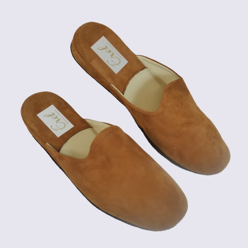 Mules Erel, Mules Confortables Femme En Cuir Camel Velours