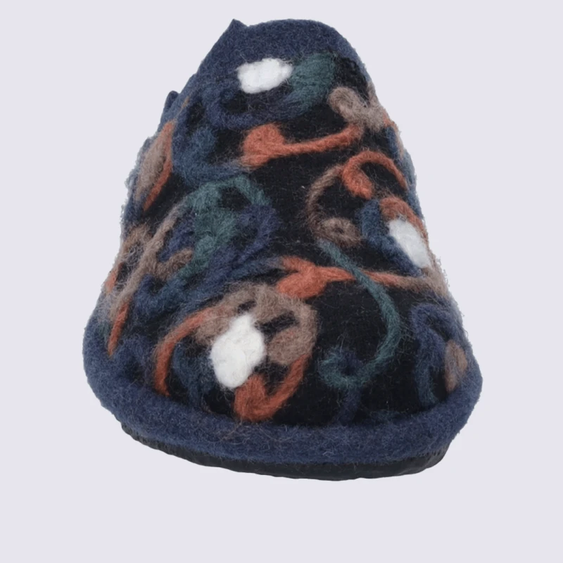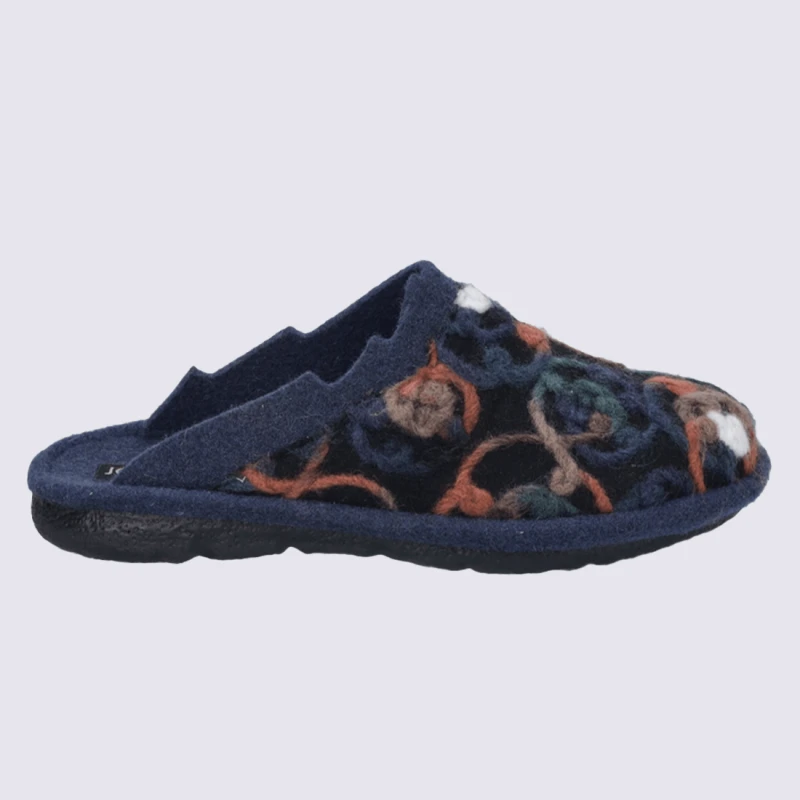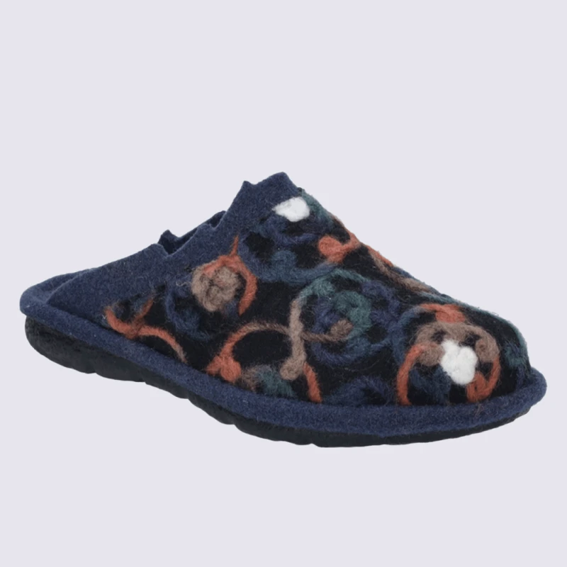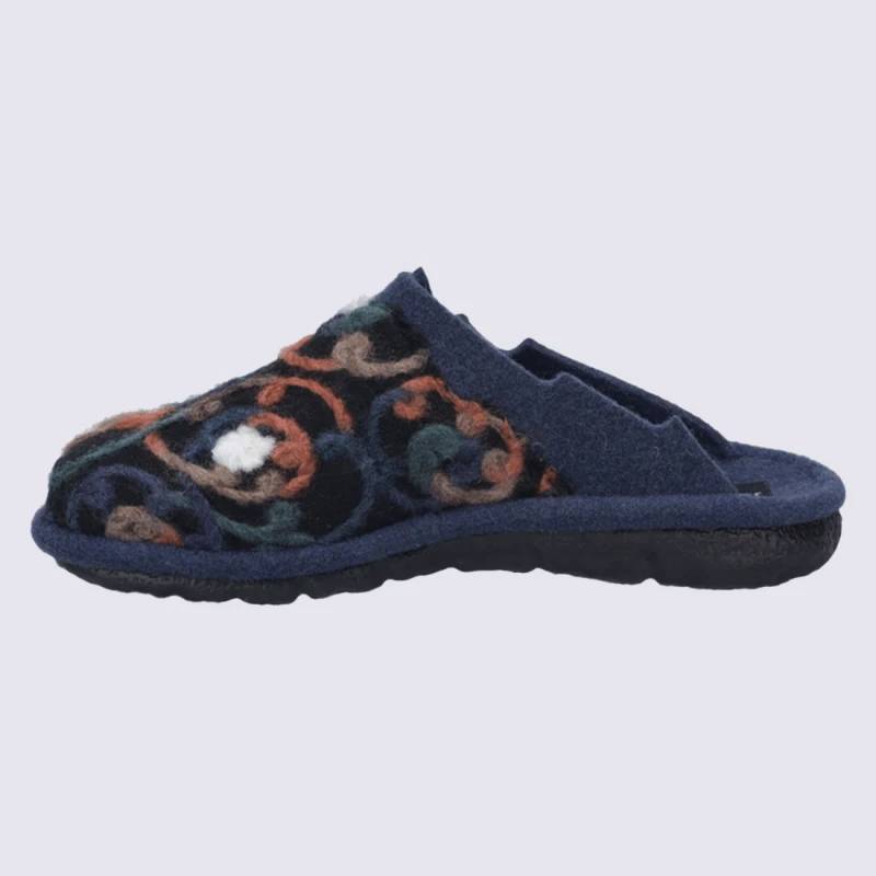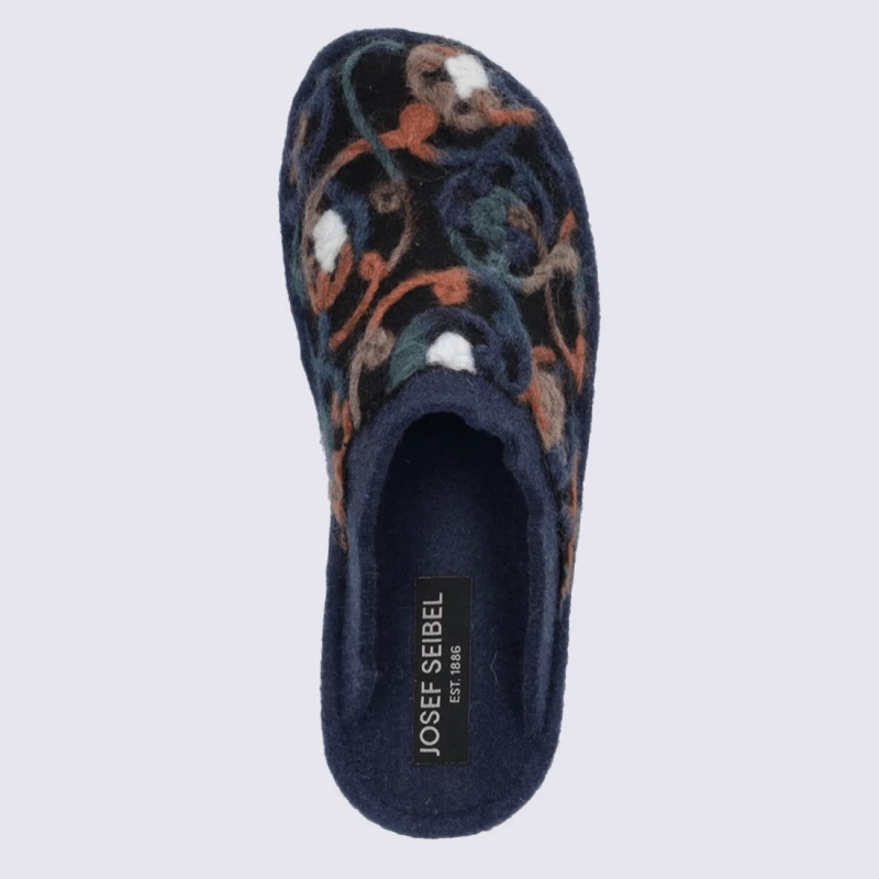 Mules Josef Seibel, Mules Agréable Et Chaude Femme Motif épuré En Textile Bleu