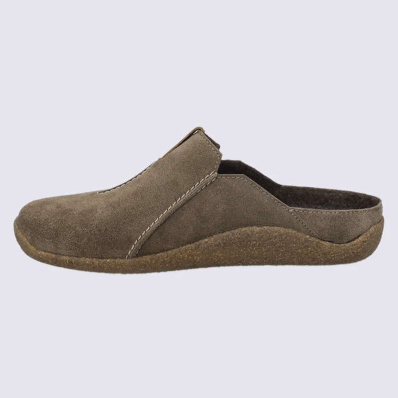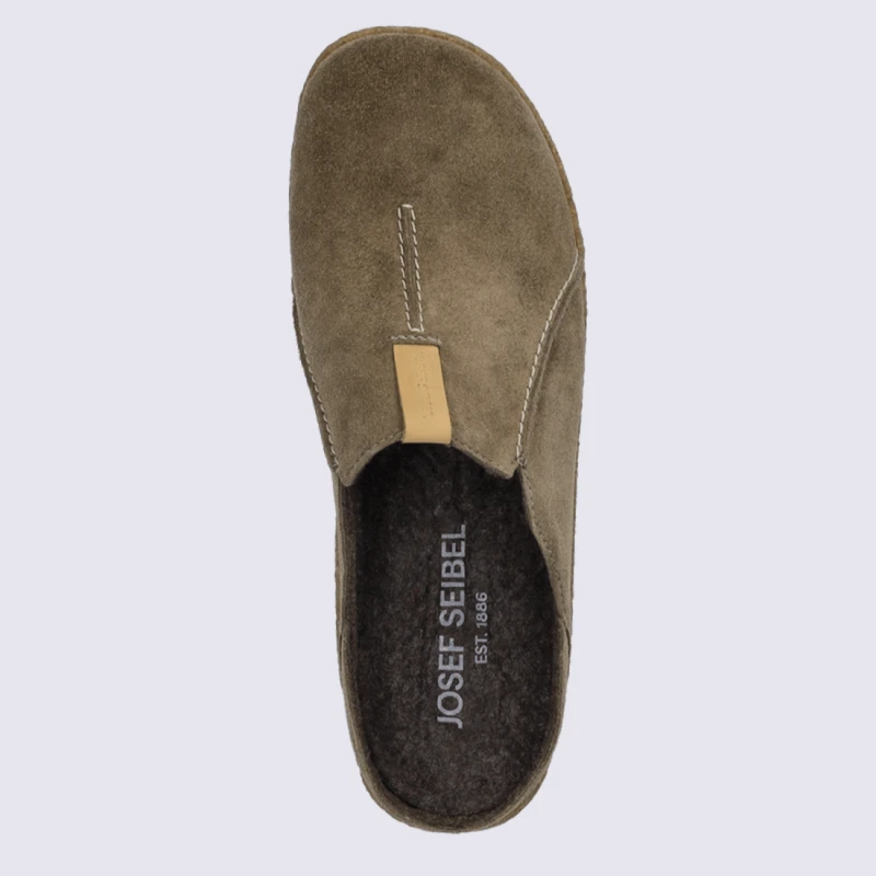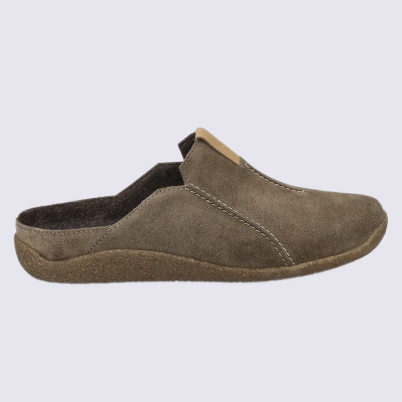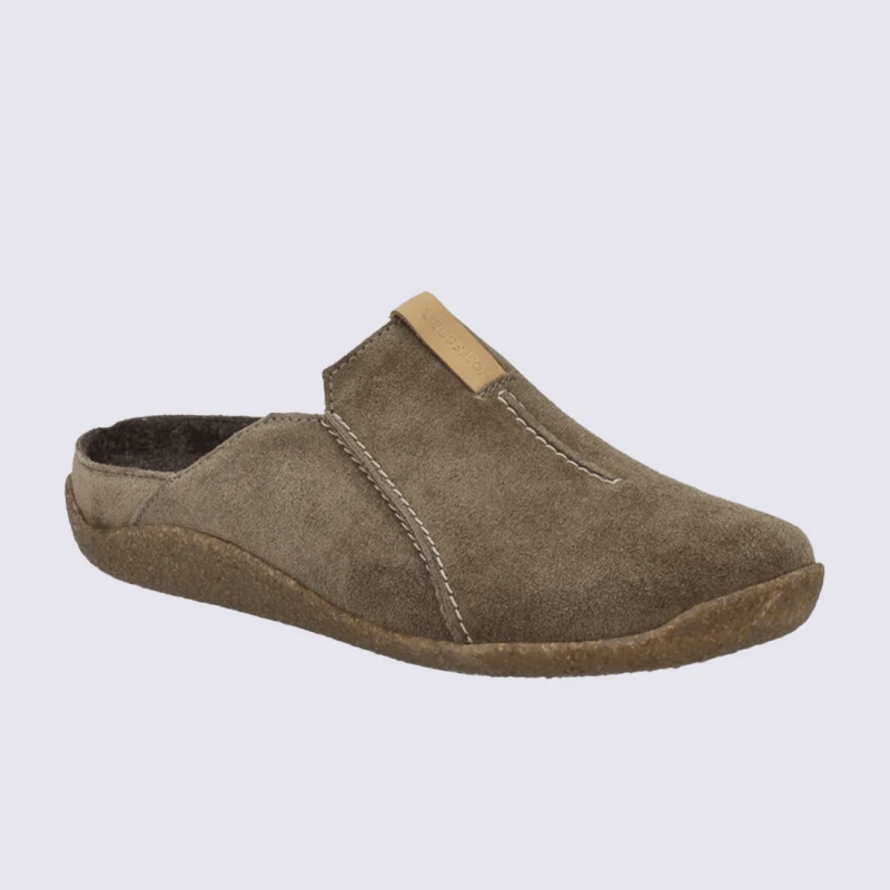 Mules Josef Seibel, Mules Confortable Et Chaud Homme En Cuir Taupe