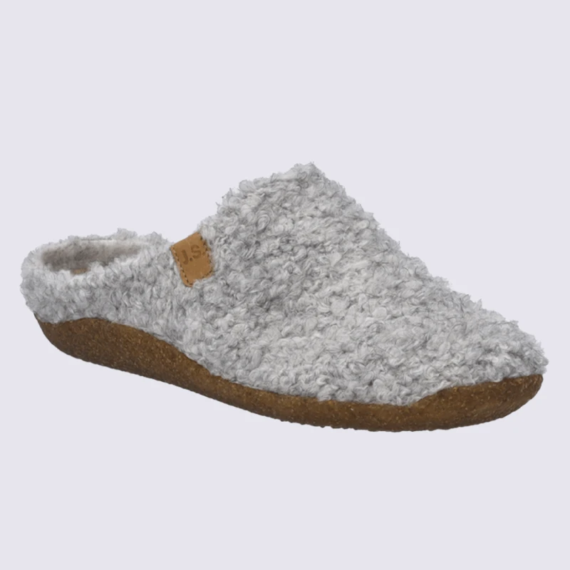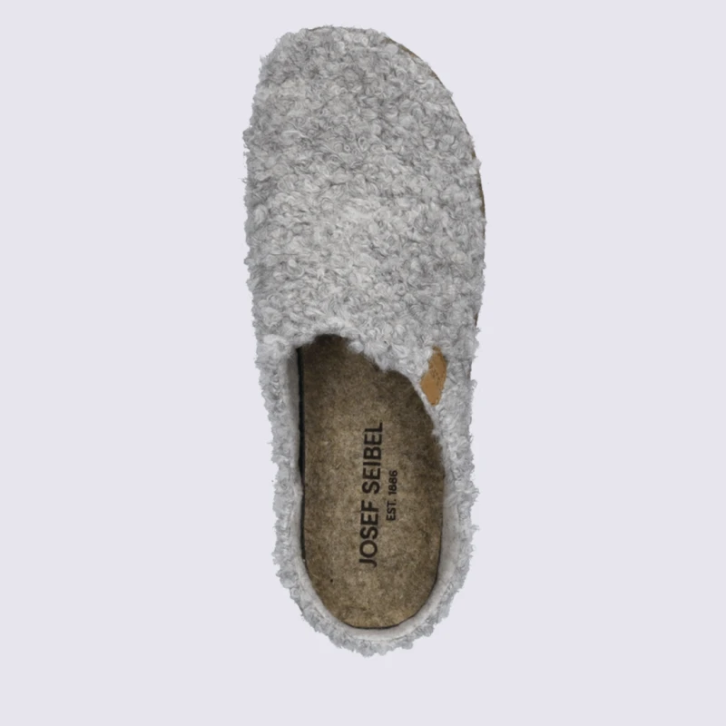 Mules Josef Seibel, Mules Confortables Et Chaude Femme En Textile Gris Clair