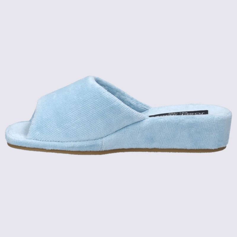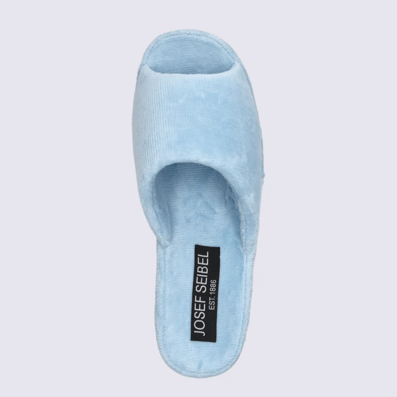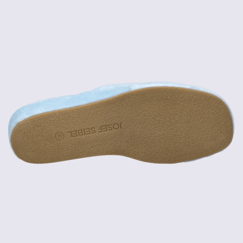 Mules éponge de la marque Josef Seibel Mule éponge 100% Coton Lavable à 30 °C Largeur G Talon : 3,5 cm Semelle antidérapante caoutchouc Référence : Marseille bleu glacé