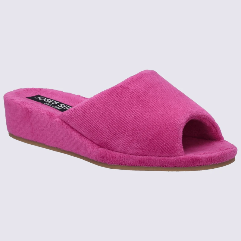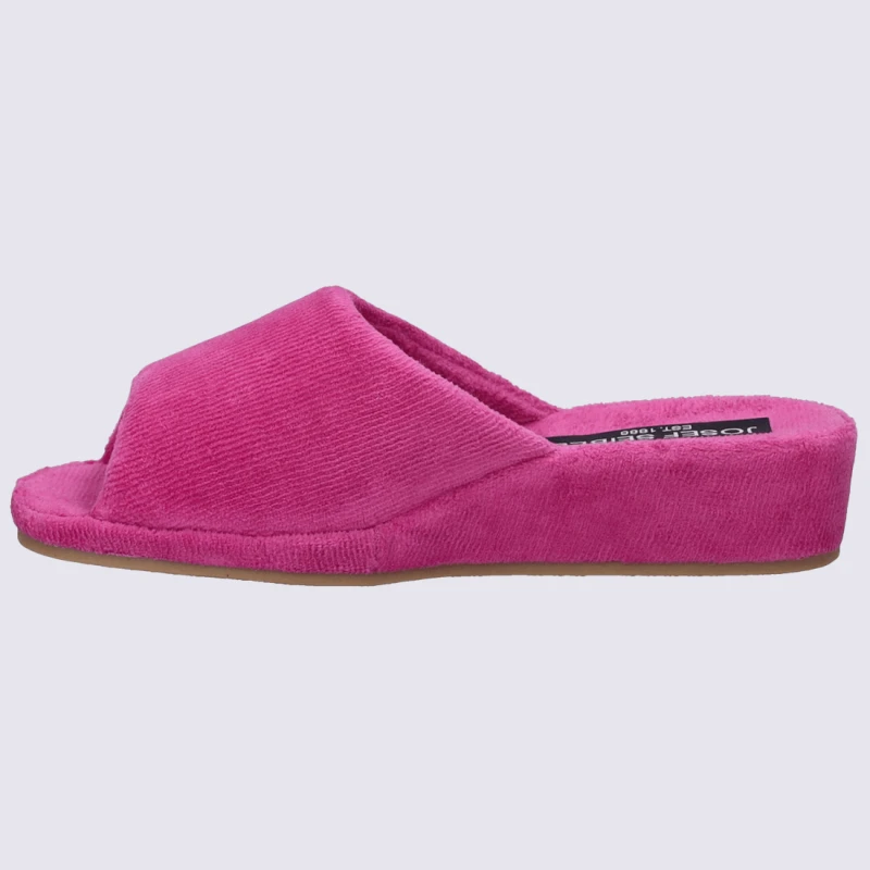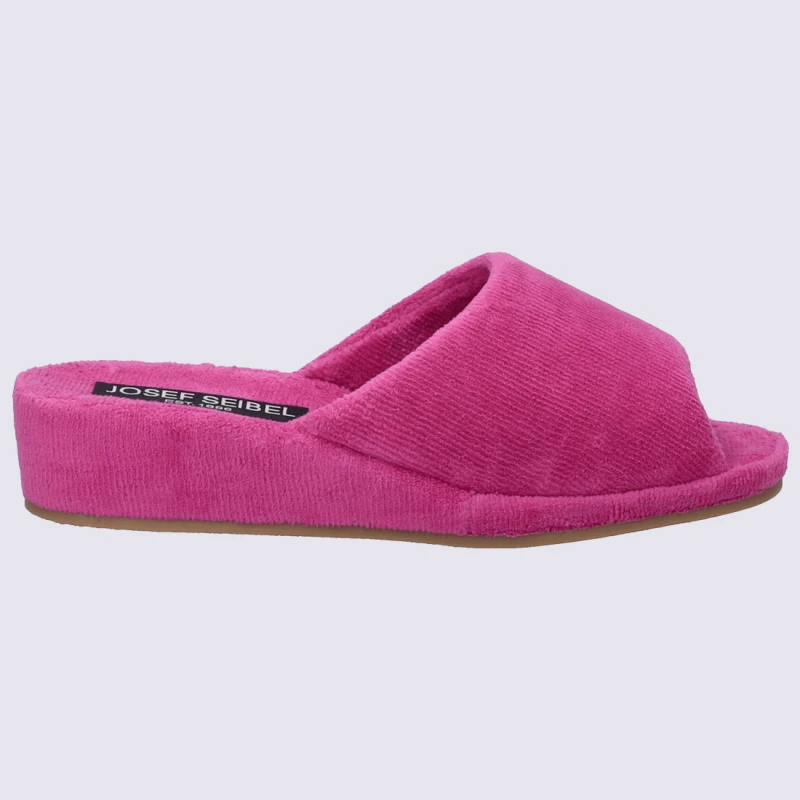 Mules éponge de la marque Josef Seibel Mule éponge 100% Coton Lavable à 30 °C Largeur G Talon : 3,5 cm Semelle antidérapante caoutchouc Référence : Marseille rose