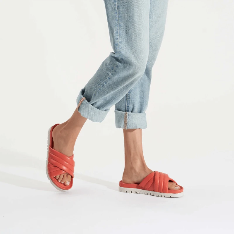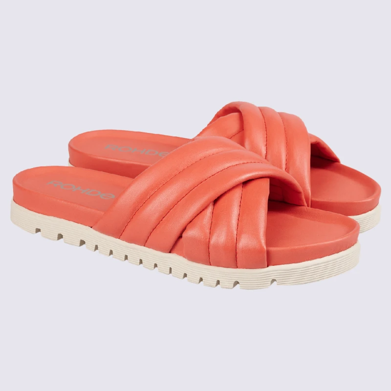Mules Rohde, Claquettes Tendances Matelassées Femme En Cuir Rose/orange Saumon