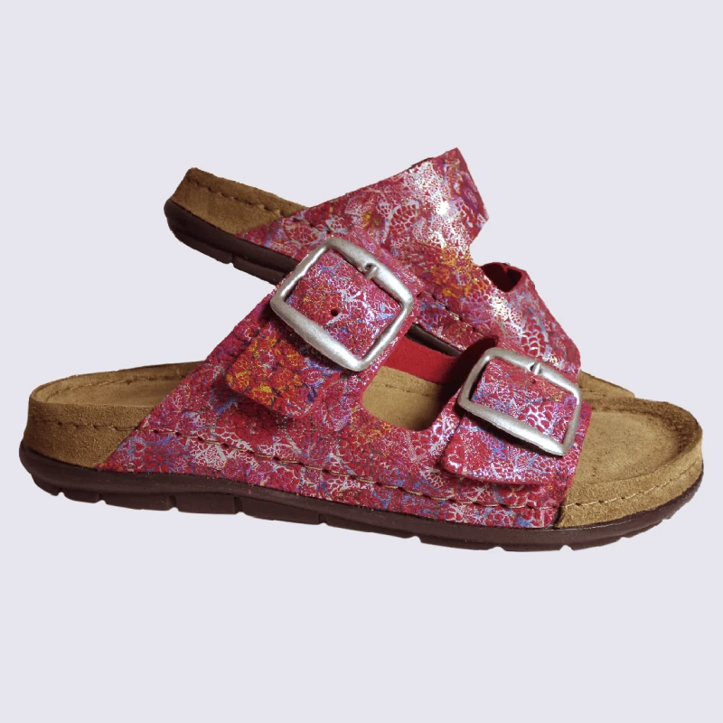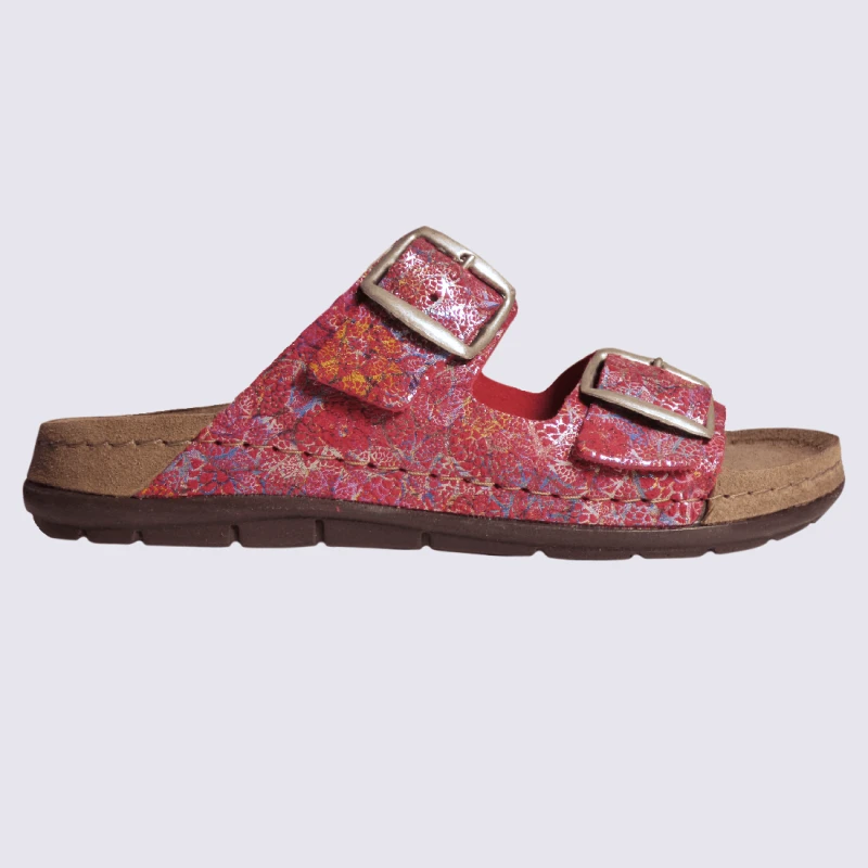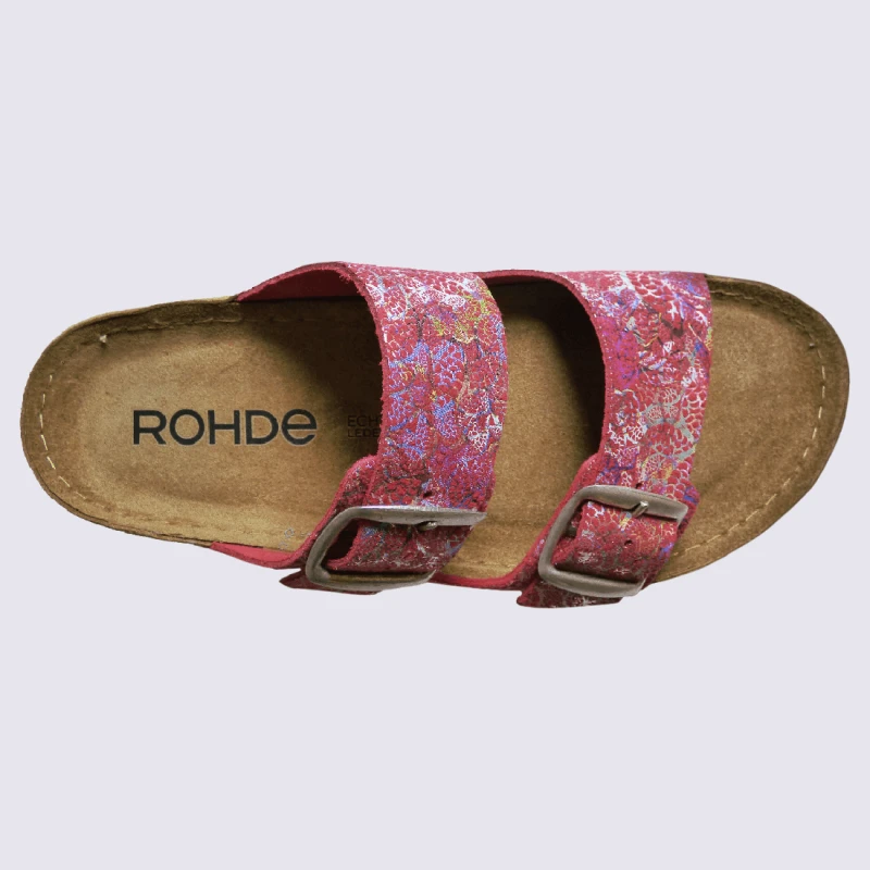 Mules Rohde, Mules Ă Deux Brides Fleuris Femme En Cuir Rouge Cerise