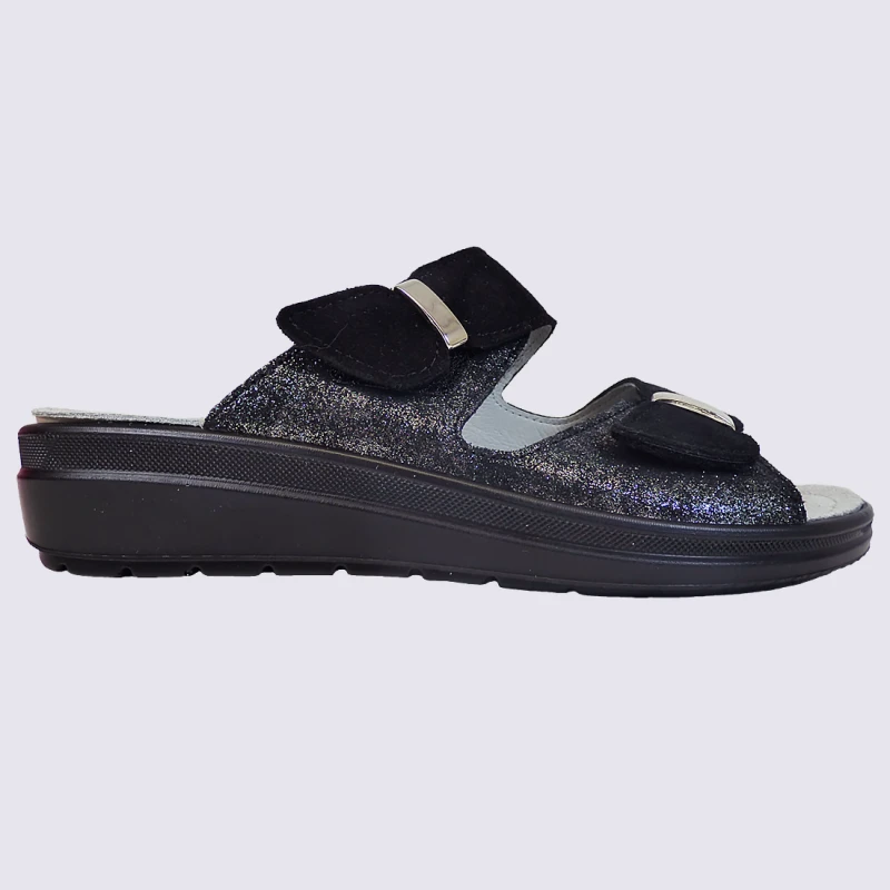 Mules Rohde, Mules à Paillettes Femme Bi-matière Noir