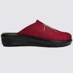 Ces mules pour femme de la marque Rohde ont un effet 100% bien-ĂŞtre ! Glissez vous Ă l’intĂ©rieur de ce chausson qui va dorloter vos pieds avec sa semelle intĂ©rieure et sa structure supĂ©rieure en feutre. Merveilleusement doux, chaud et respirant pour vos journĂ©es d’hiver les plus froides, ce chausson amortit chacun de vos pas avec sa semelle souple antidĂ©rapante et lĂ©gère comme une plume. Vous serez sous le charme de cette couleur bordeaux et ses dĂ©tails en strass, vous ne voudrez plus jamais les quitter ! DĂ©couvrez toute la collection Rohde sur igert.fr !Â
