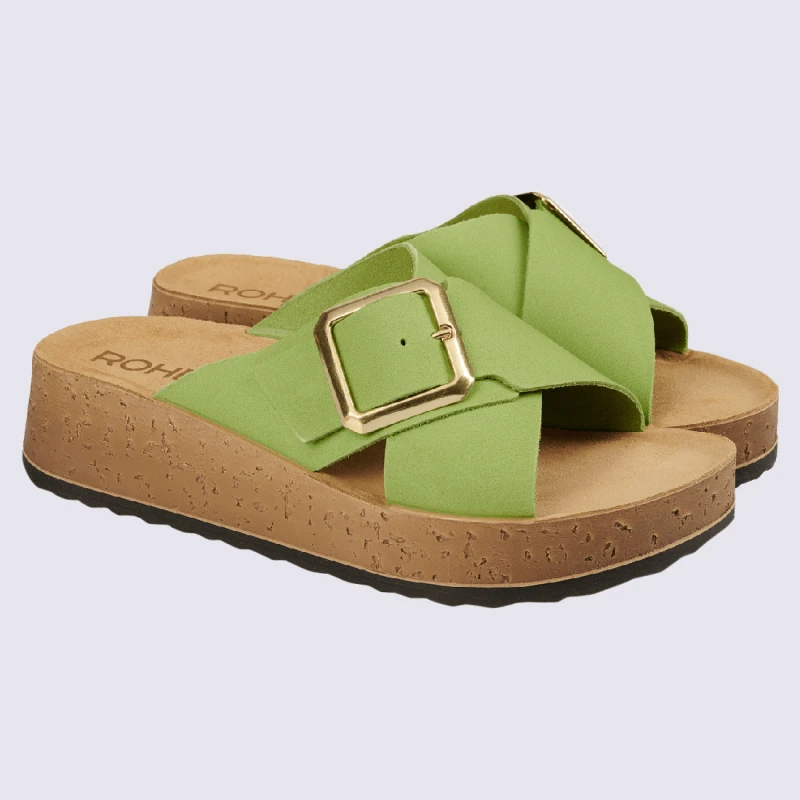 Laissez-vous séduire par ces mules à talons compensés de la marque Rohde en vert kiwi ! Avec leurs brides croisées et leur couleur vive, ces mules sont très à la mode. Leur semelle confortable et leur cuir effet peau de pêche assurent une marche agréable. Idéales pour le printemps et l’été, ces mules vous offrent style et liberté pour toutes vos sorties. Découvrez toute la collection Rohde sur igert.fr !