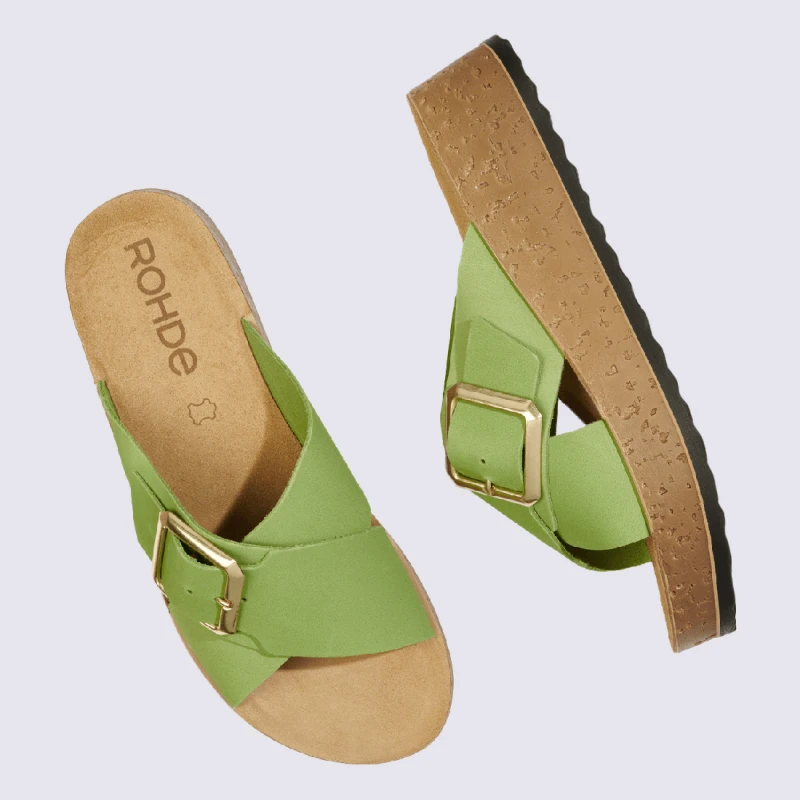 Mules Rohde, Mules à Talons Compensés Femme En Cuir Nubuck Vert Kiwi