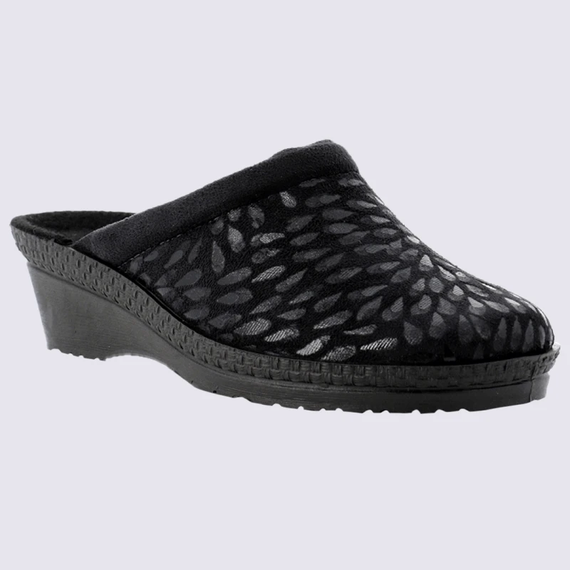 Mules Rohde, Mules Compensées Imprimé Gouttes Femme En Feutre Noir