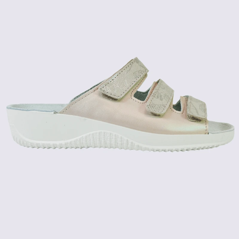 Mules Rohde, Mules Confortables 3 Brides Velcro Femme En Cuir Rose/blanc