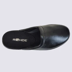 Mules homme de la marque Rohde Dessus cuir noir Semelle intĂ©rieure touchĂ© doux Semelle extĂ©rieure en synthĂ©tique Souple, idĂ©al pour l’intĂ©rieur et peut ĂŞtre utilisĂ©e pour l’extĂ©rieure Talon : 3 cm Largeur G RĂ©fĂ©rence : Rohde 1552 Noir