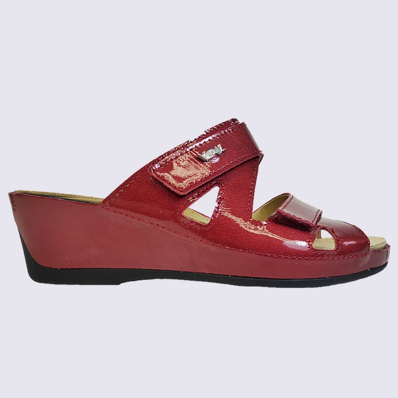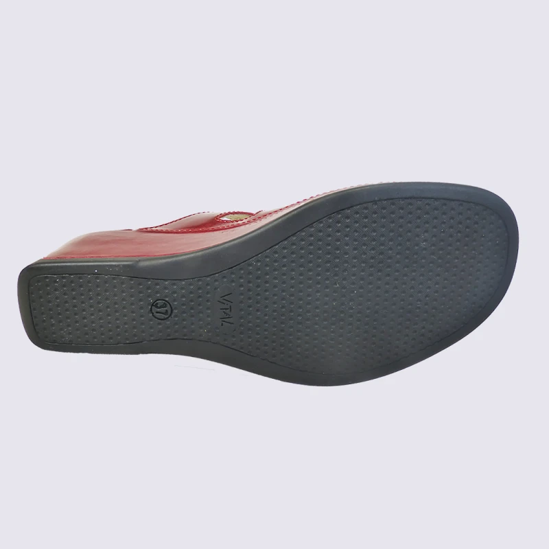 Mules Vital, Mules Compensées Confortables Femme En Cuir Rouge