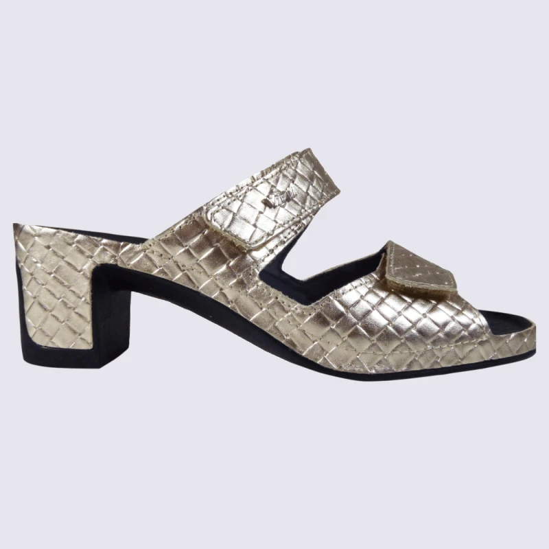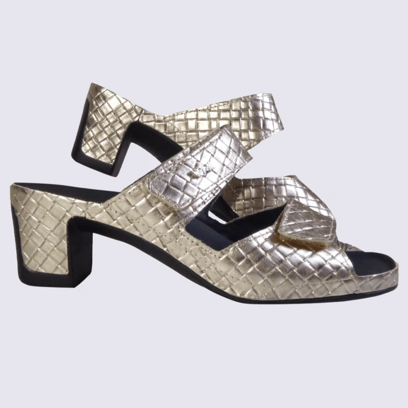 Mules Vital, Mules Ouvertes à Talons Confortables Tressées Femme En Cuir Doré