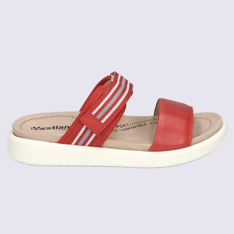 Mules Westland By Josef Seibel, Mules Ă Bride Velcro Femme En Cuir Rouge