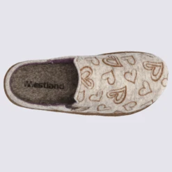 Mules Westland By Josef Seibel, Mules Chaudes à Motif Cœurs En Feutre De Laine Beige