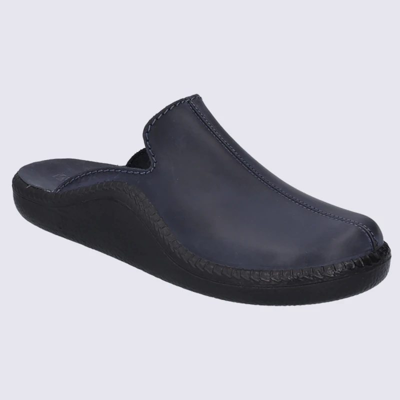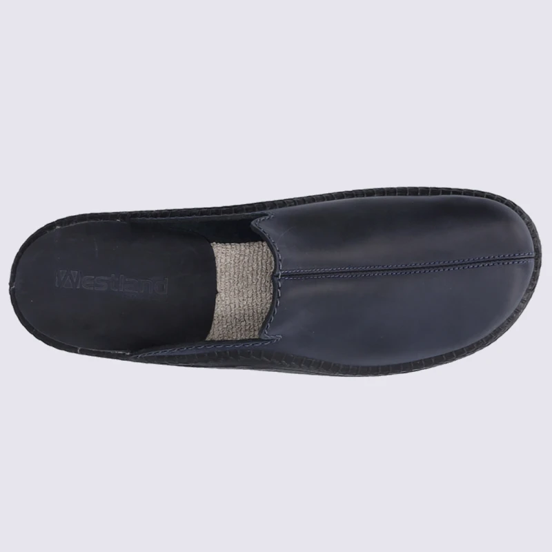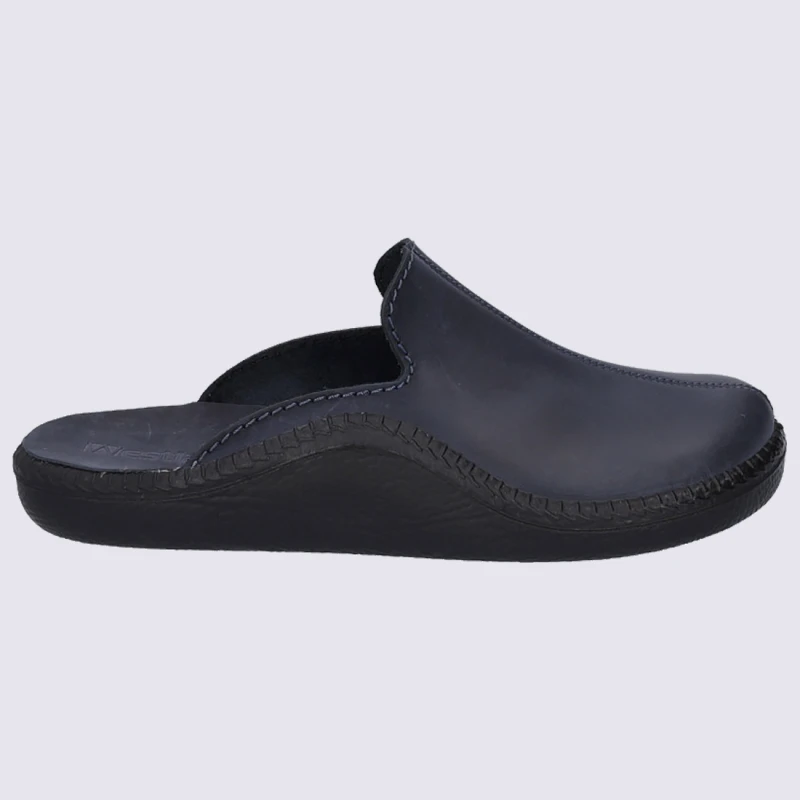 Mules Westland By Josef Seibel, Mules Confort Homme En Cuir Gras Bleu Jeans
