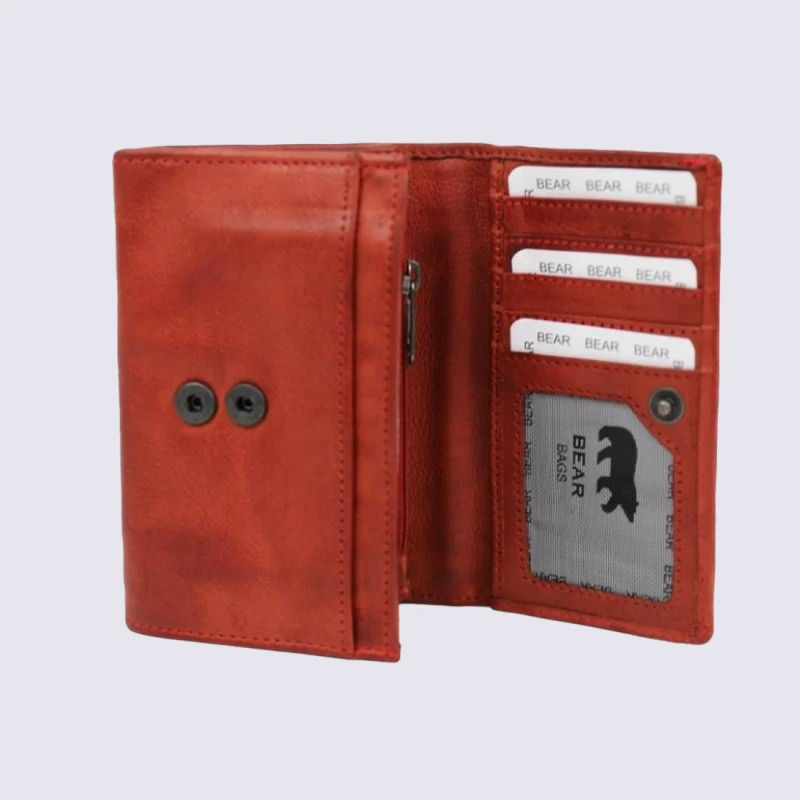 Portefeuille Bear, Portefeuilles Ă Rabat Pression Femme En Cuir Rouge