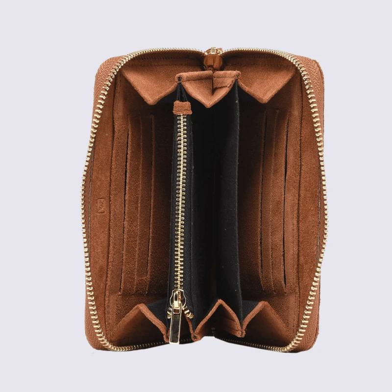 - Intérieure : 2 volets, 1 compartiment principal, 1 porte-monnaie zippé et 6 emplacements cartes