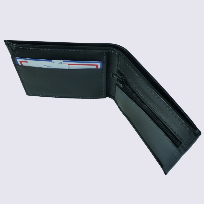Portefeuille Frandi, Petit Portefeuille De Haute Qualité Homme En Cuir Chic Noir
