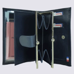 - IntĂ©rieur : Rangement pour papier d’identitĂ© et permis de conduire, poche pour la monnaie avec fermoir, 4 emplacements pour cartes