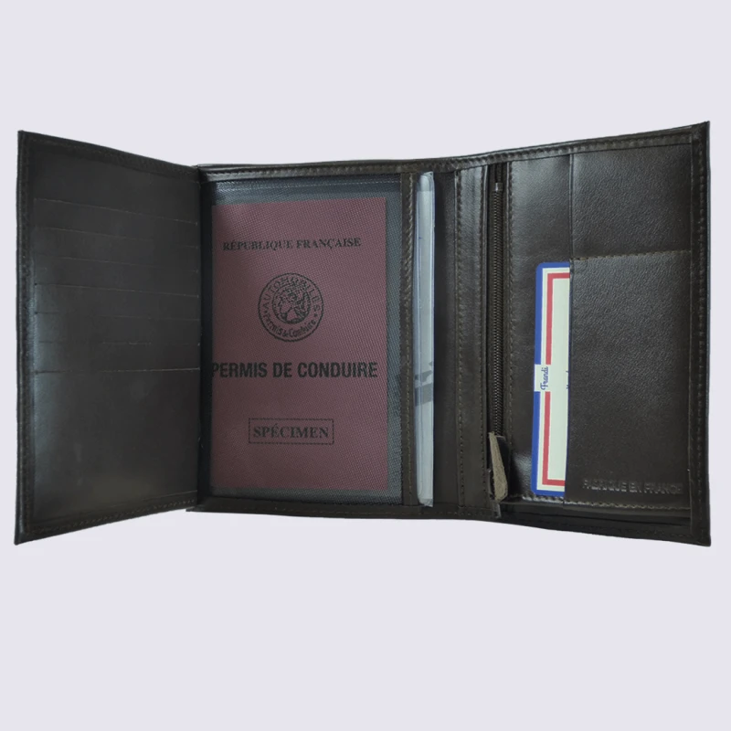 - IntĂ©rieur : 14 emplacements cartes, 1 emplacement pour la monnaie zippĂ©, 1 poche dorsale Ă billets, 1 emplacement pour carte d’identitĂ© et permis de conduire
