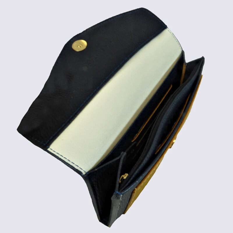 Extérieur: Rabat à pression Intérieur : Un compartiment principal, rangements cartes, compartiment avec fermeture à glissière pour monnaie Livraison gratuite sous 2 à 4 jours Référence : Mongia marine