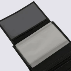 - Intérieur : 2 volets, 1 porte-monnaie zippé, 5 poches plates (dont 2 à vue transparente), 5 emplacements carte (dont 1 à vue transparente), 1 poche billets