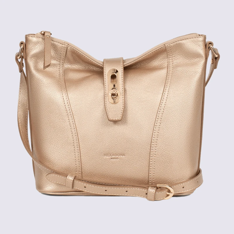 Sac Bandoulière Hexagona, Sac Bandoulière Compartiment Spacieux Femme En Cuir De Vachette Doré