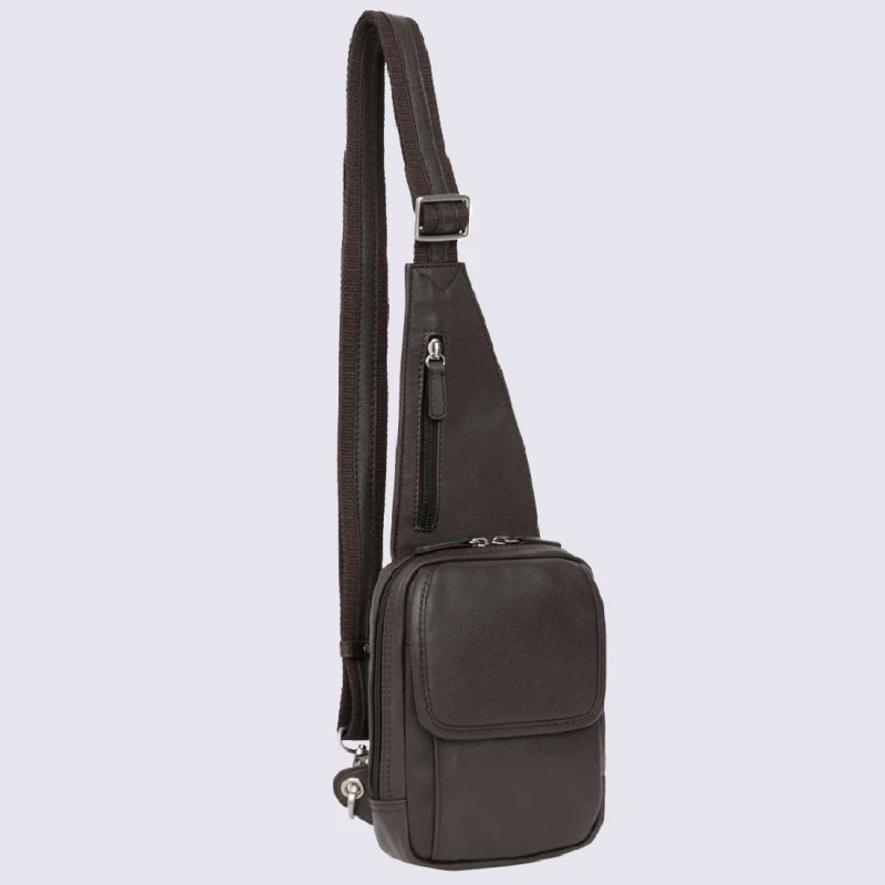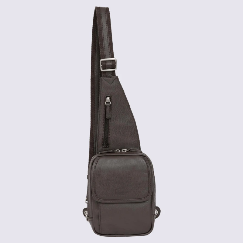 Sac Monobretelle Hexagona, Sac Monobretelle Homme En Cuir Marron Foncé
