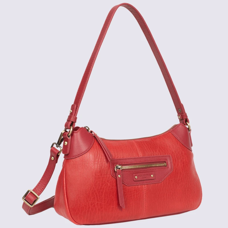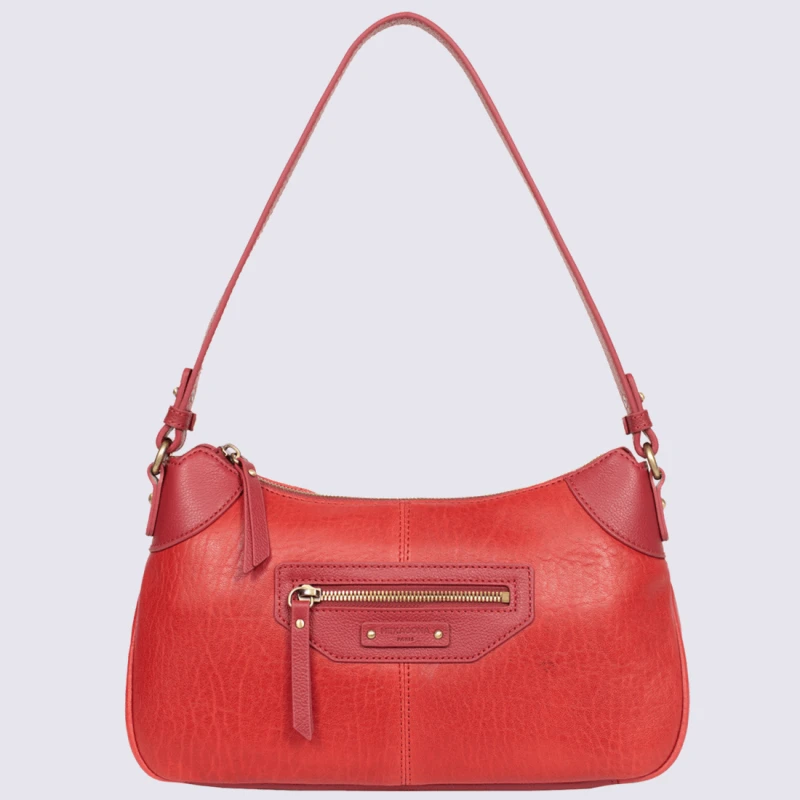 Sac Porté épaule Hexagona, Sac Baguette Femme En Cuir Rouge