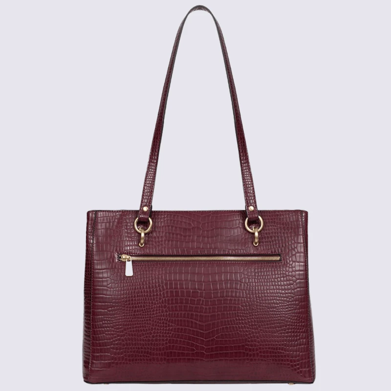 Sac Porté épaule Hexagona, Sac Porté épaule Effet Croco Femme Bordeaux/prune