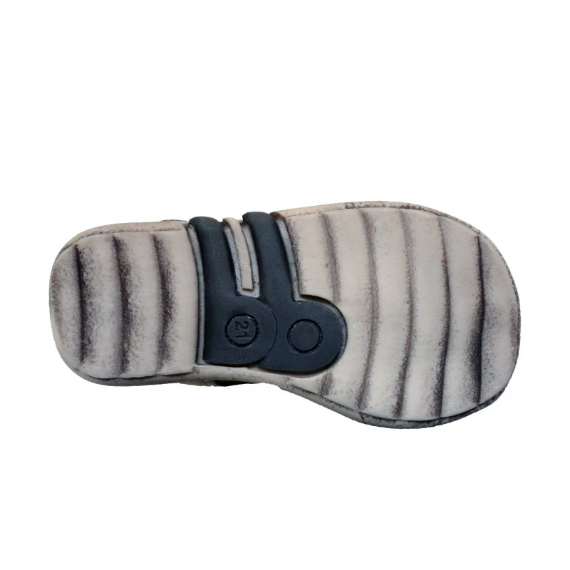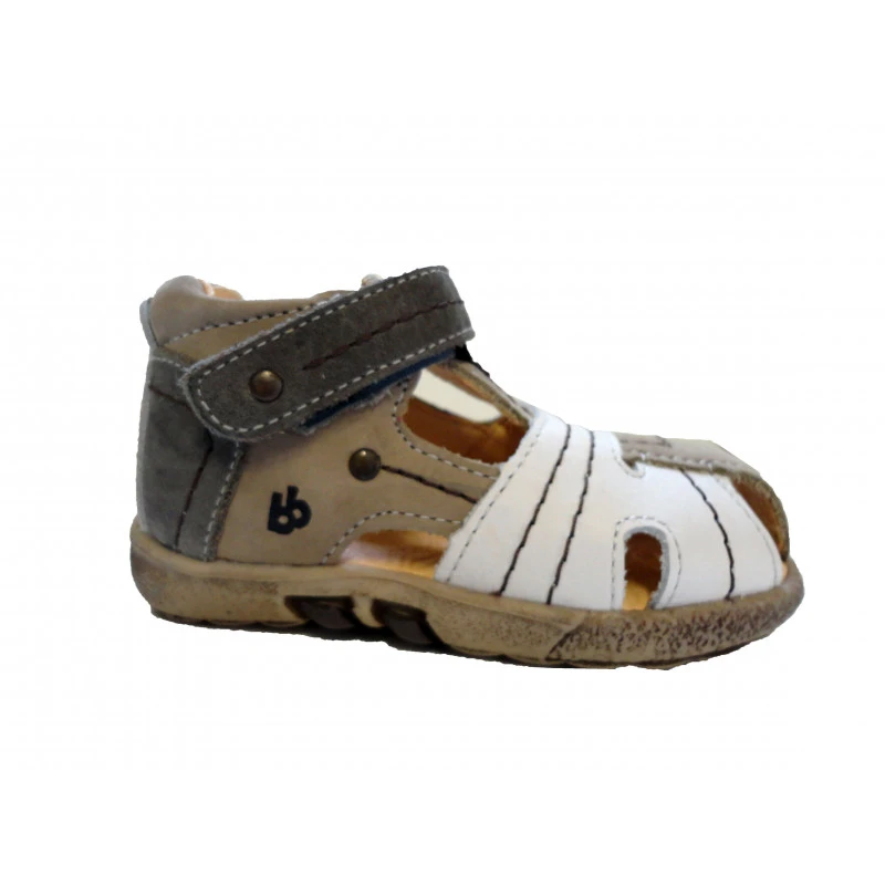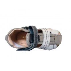 Sandale Babybotte Thao à bride velcro en dessus cuir écru entièrement doublé cuir semelle gomme.
