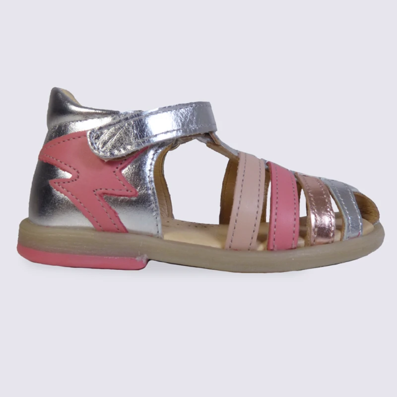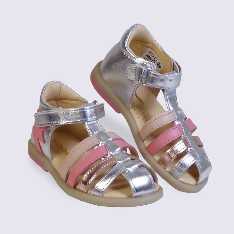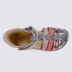 Sandale Pour Fille Babybotte En Cuir Argent Et Rose