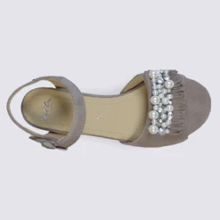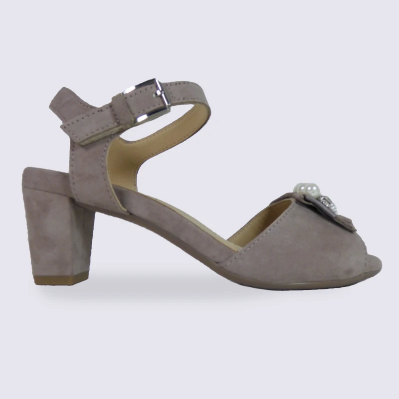 Sandales Ă Talon Ara En Cuir Taupe Avec Perles Tendance