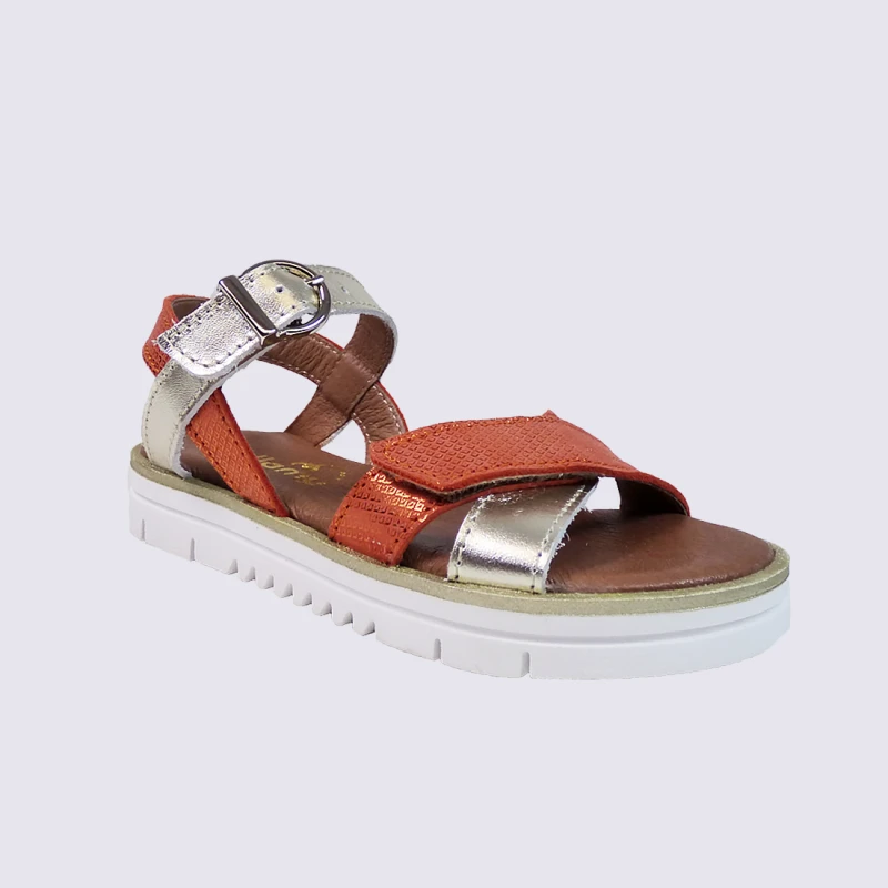 Sandales Bellamy, Sandales Ă Brides Auto-agrippantes Filles En Cuir Or Orange