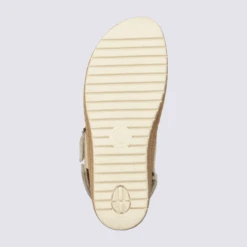 Sandales Compensées, Sandales Confort Chic Femme En Cuir Beige