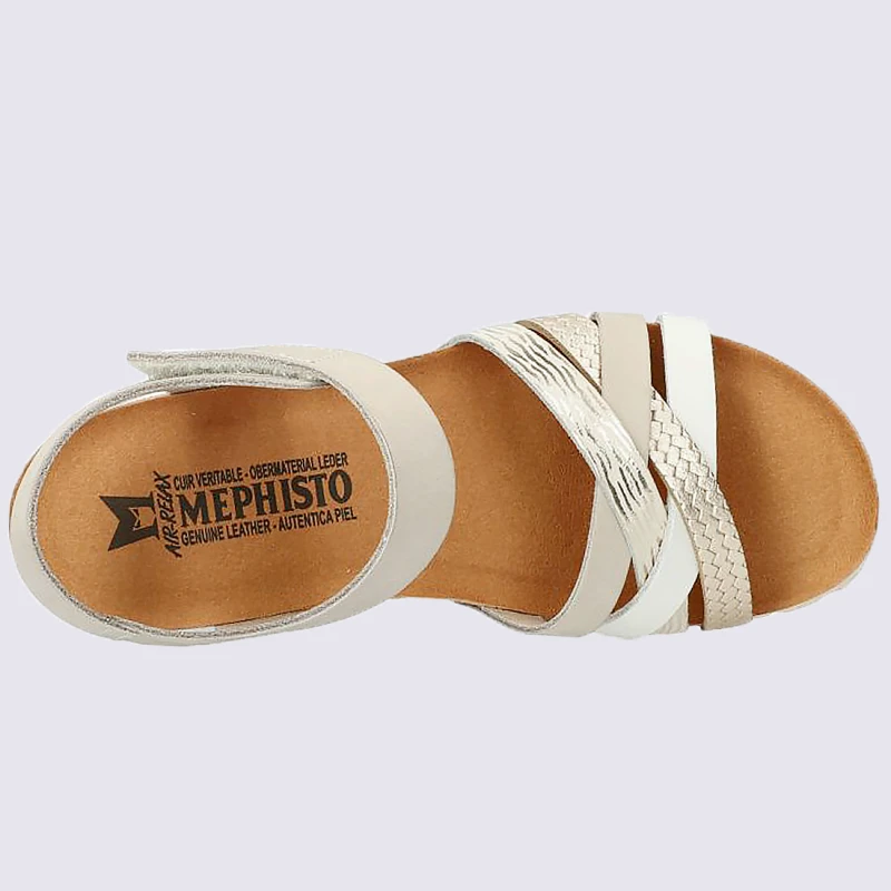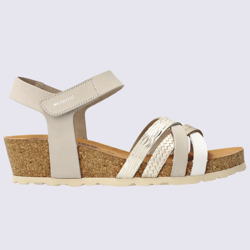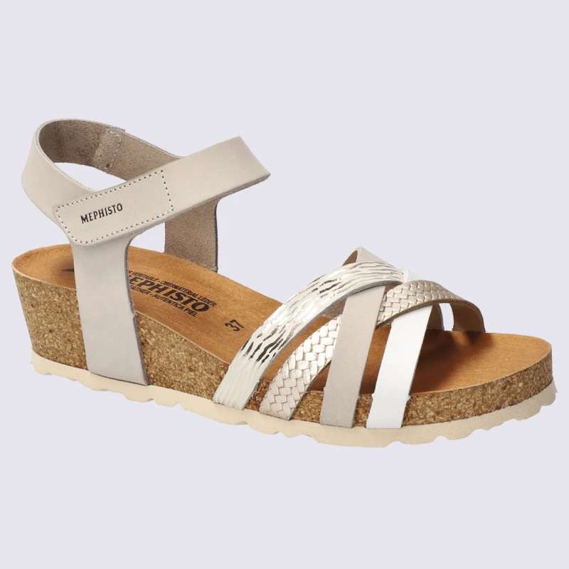 Ces sandales de la marque Mephisto se distinguent par leur allure féminine et élégante. Avec son design à semelle compensée de liège SOFT-AIR, cette sandale ultra confortable offre un chaussant excellent avec ses brides croisées. Ce modèle est composé de cuir à l’avant et à l’arrière avec un imprimé tendance et un effet irisé qui vous fera craquer ! Découvrez tous les produits Mephisto sur igert.fr !