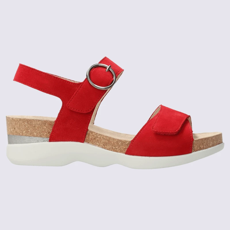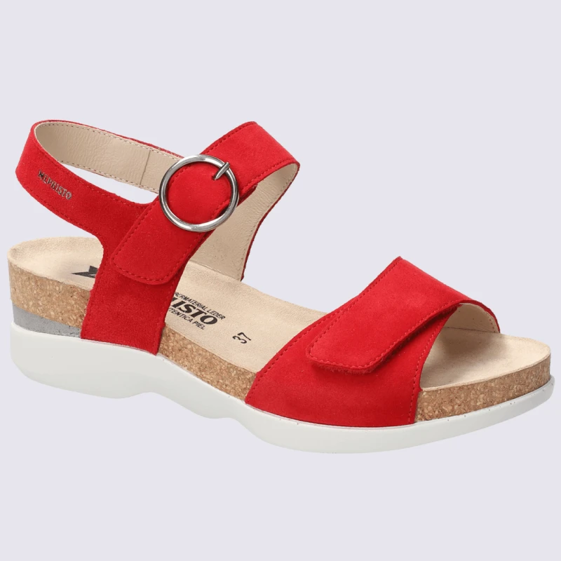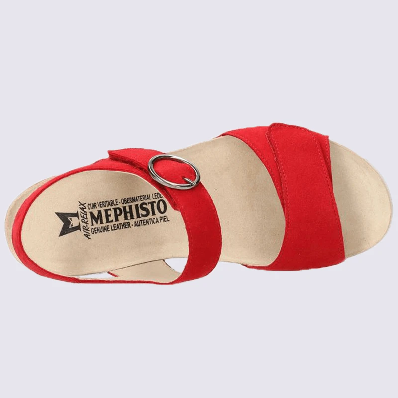 DĂ©couvrez ces sandales Ă talon compensĂ© fĂ©minines de la marque Mephisto pour femme en cuir velours rouge avec une voĂ»te en liège. Profitez d’un confort optimal grâce au SHOCK-ABSORBER et Ă l’intercalaire SOFT-AIR qui rĂ©duisent les chocs inhĂ©rents Ă la marche. La technologie AIR-RELAX respecte l’anatomie du pied pour Ă©viter l’affaissement de la voĂ»te plantaire. DĂ©couvrez tous les produits Mephisto sur igert.fr !