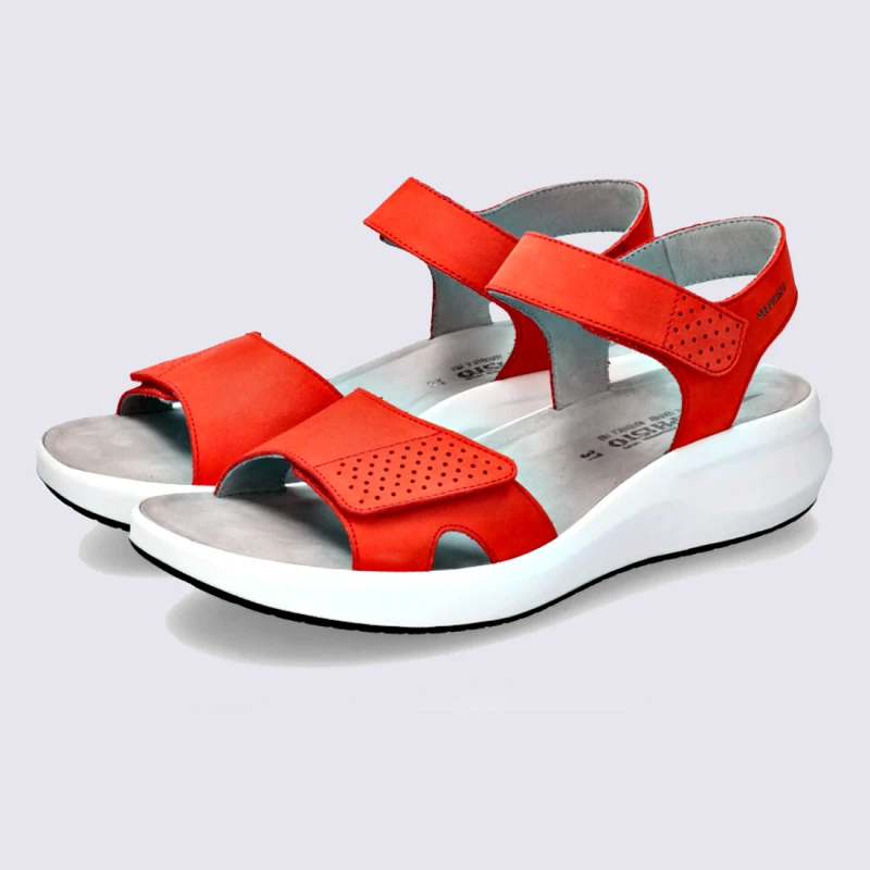 Sandales Mephisto, Sandales Confortables Femme En Cuir Rouge