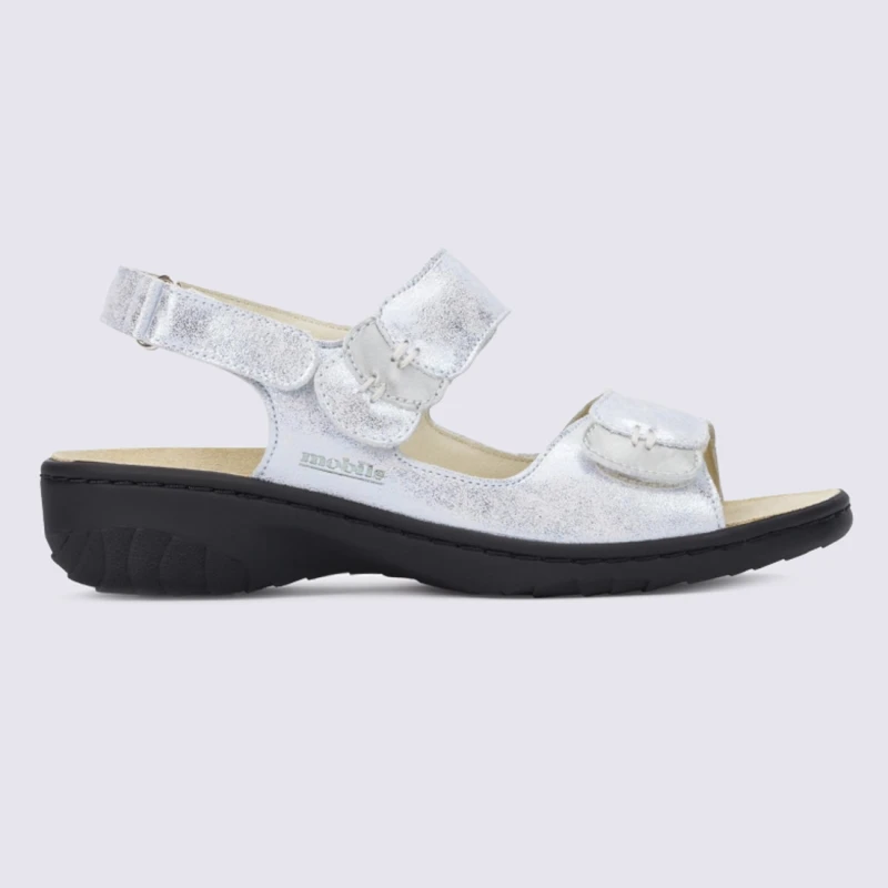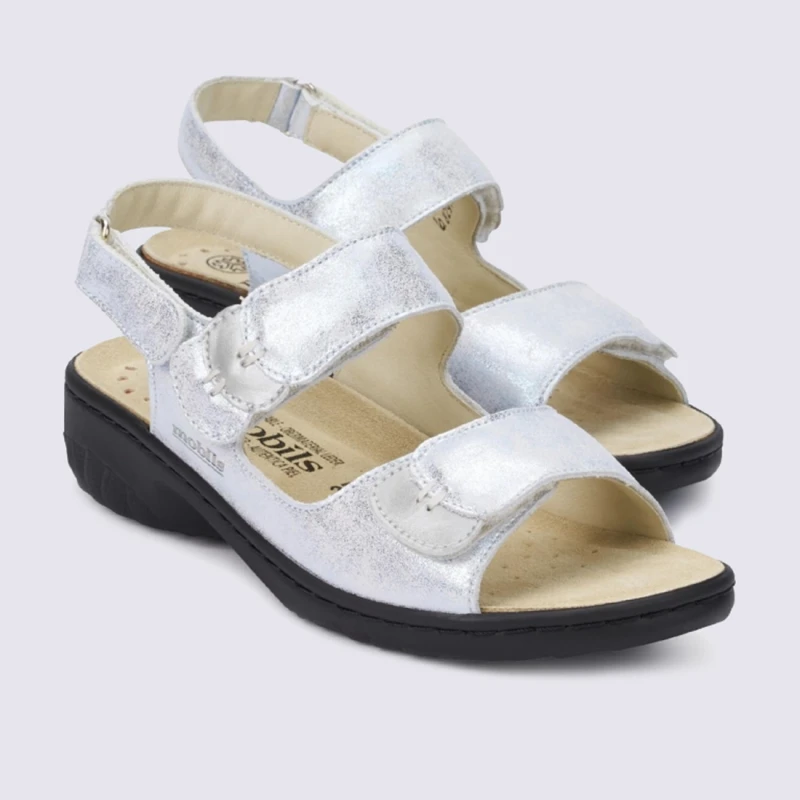 Sandales Mobils, Sandales Confortables Femme En Cuir Argent