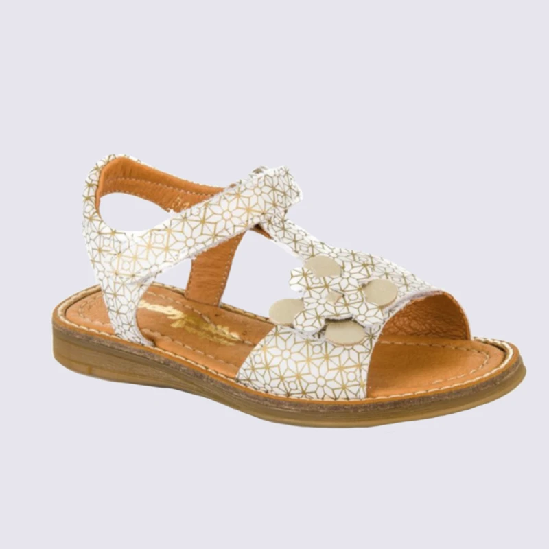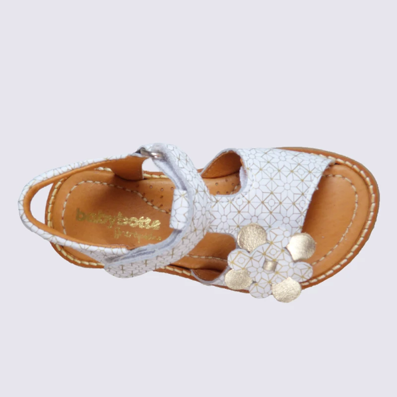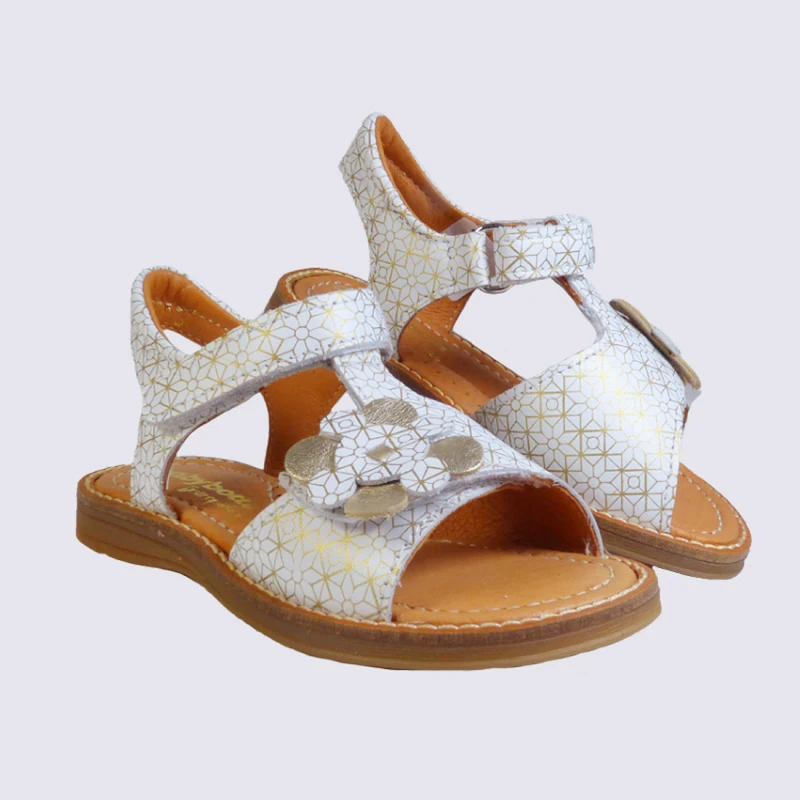 Sandales Pour Fille Babybotte En Cuir Blanc Et Doré Tendance