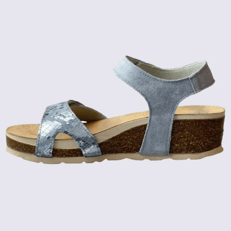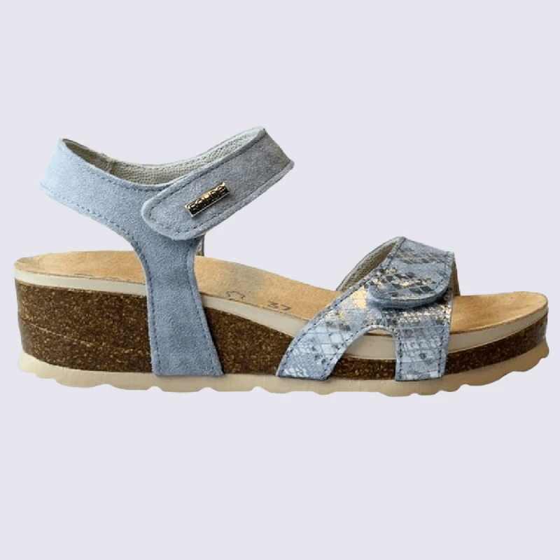 Sandales Rohde, Sandales Confortables à Talons Compensés Femme En Cuir Et Textile Bleu Basalt