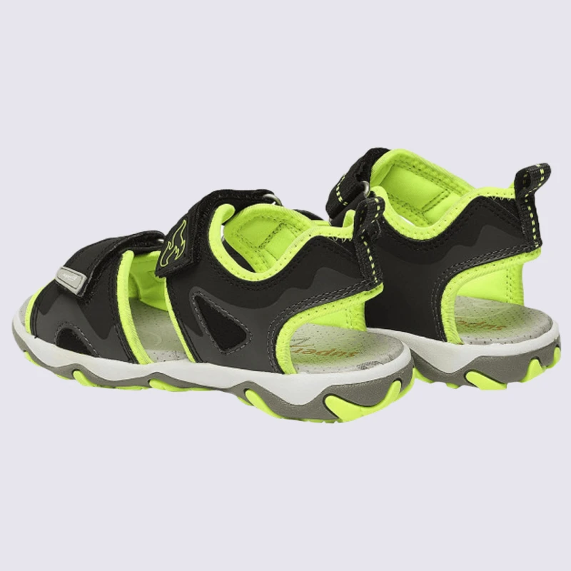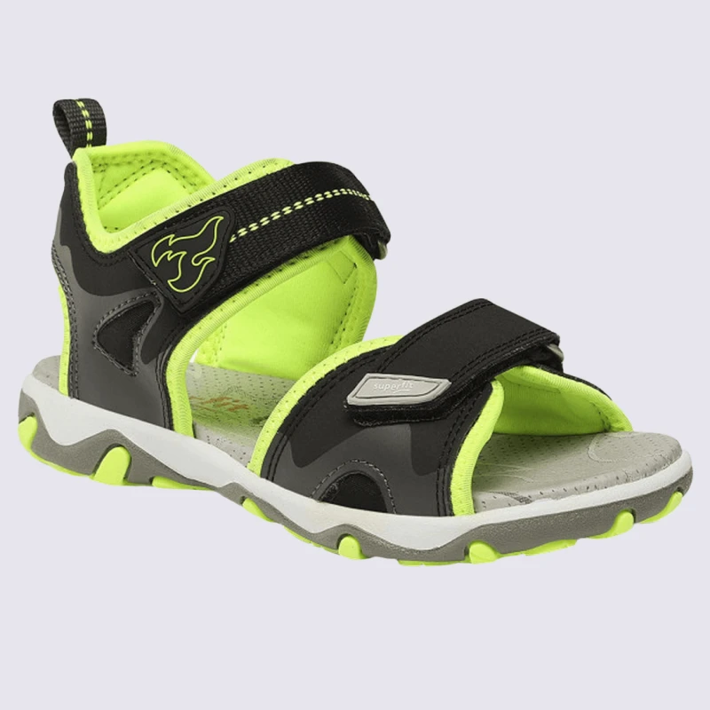 Sandales Superfit, Sandales Flamme Garçons En Cuir Et Textile Noir/jaune